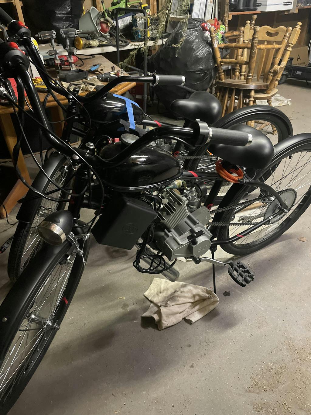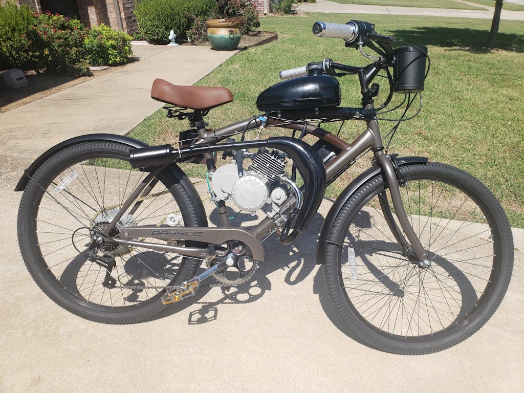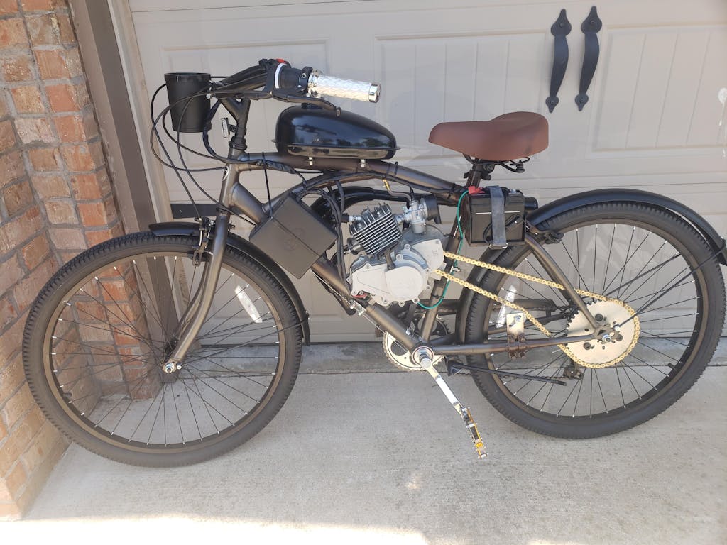 The BBR Tuning Bullet Train bike engine kit's equipped with an electric ignition and centrifugal clutch that eliminates the need to pedal-start (or bump-start) this engine, unlike other 2-stroke bike engines.