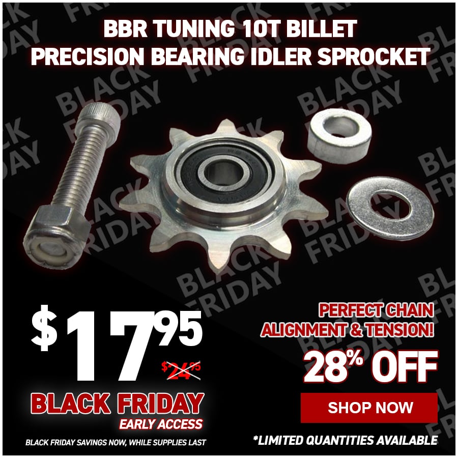 The 10T billet idler tensioner precision bearing sprocket with high-end roller bearings for smooth spinning of the wheel. These can be used as a replacement to your stock nylon wheel or with the Kip Springer Chain Tensioner. Either way a nice upgrade.