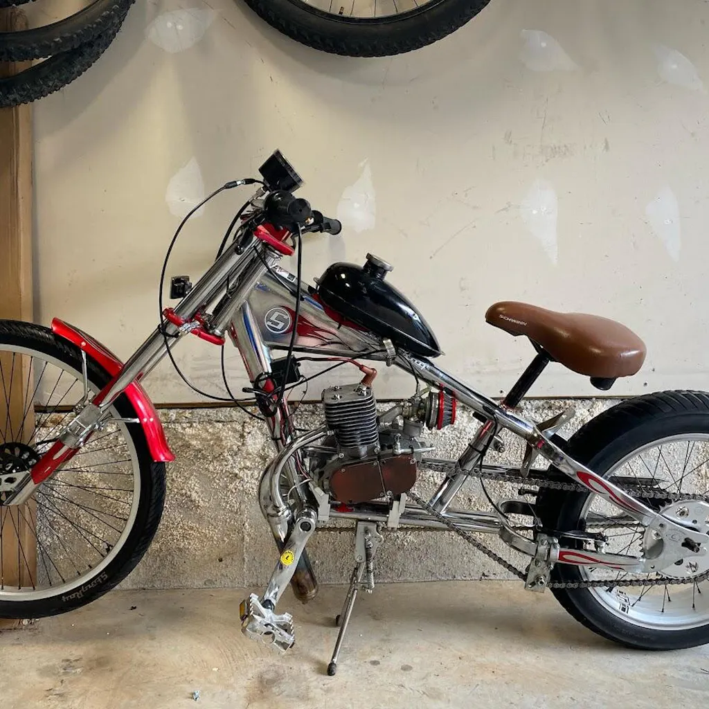 If you're looking for a stronger, more secure way to mount your 2-stroke motorized bike engine to a Schwinn Stingray Chopper Bike, look no further than the BBR Tuning CNC OCC Chopper Motor Mount. Made from CNC aluminum, these mounts will help make mounting your engine a lot easier and a whole lot safer.