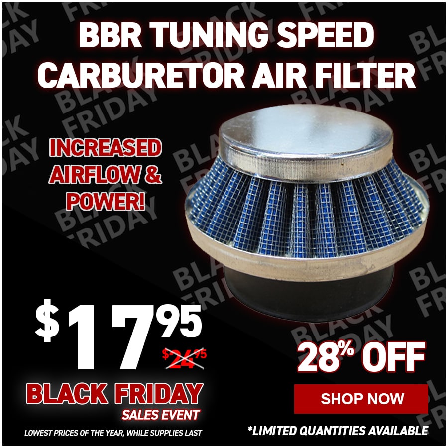 If you're looking for more performance out of your carburetor, set your carb up with a BBR Tuning High Performance Air Filter. Compatible with the Speed Carburetor and NT Carburetor, this air filter will bring more air in to your carb, and in turn, will give you some more power and your motor will run a little smoother as well.