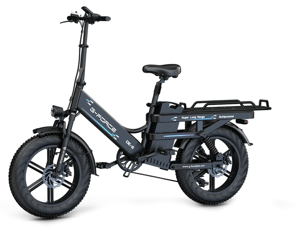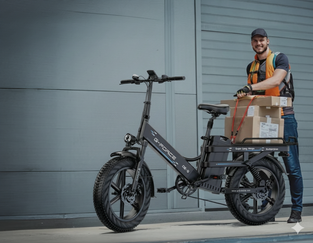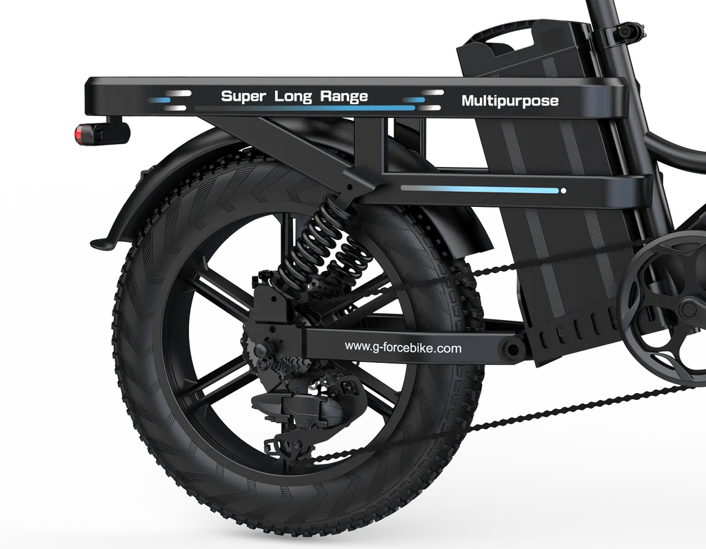 The G-FORCE DE-S’s wide 4-inch tires, combined with a seamless integrated wheel design, are built to tackle slippery roads and rough terrains with ease. Perfect for cargo delivery, these fat tires offer exceptional traction on sand, mud, or snow, ensuring your goods stay secure and stable during transit. The increased grip and anti-slip performance provide a smoother, more comfortable ride on wet or uneven surfaces, while the one-piece wheel construction enhances durability and strength. Ideal for confident, efficient deliveries across any terrain.