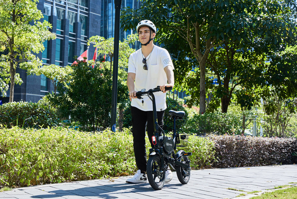 Equipped with a punchy 400W brushless motor, the GoDash delivers a top speed of 20 mph and a travel range of up to 30 miles on a single charge. It is thoughtfully designed with safety and utility in mind, featuring mechanical disc brakes for responsive stopping power, puncture-resistant 14-inch tires, and an integrated headlight. With its user-friendly twist-grip throttle and pedal-assist options, it provides a seamless riding experience for those looking for a lightweight, eco-friendly commuting solution.