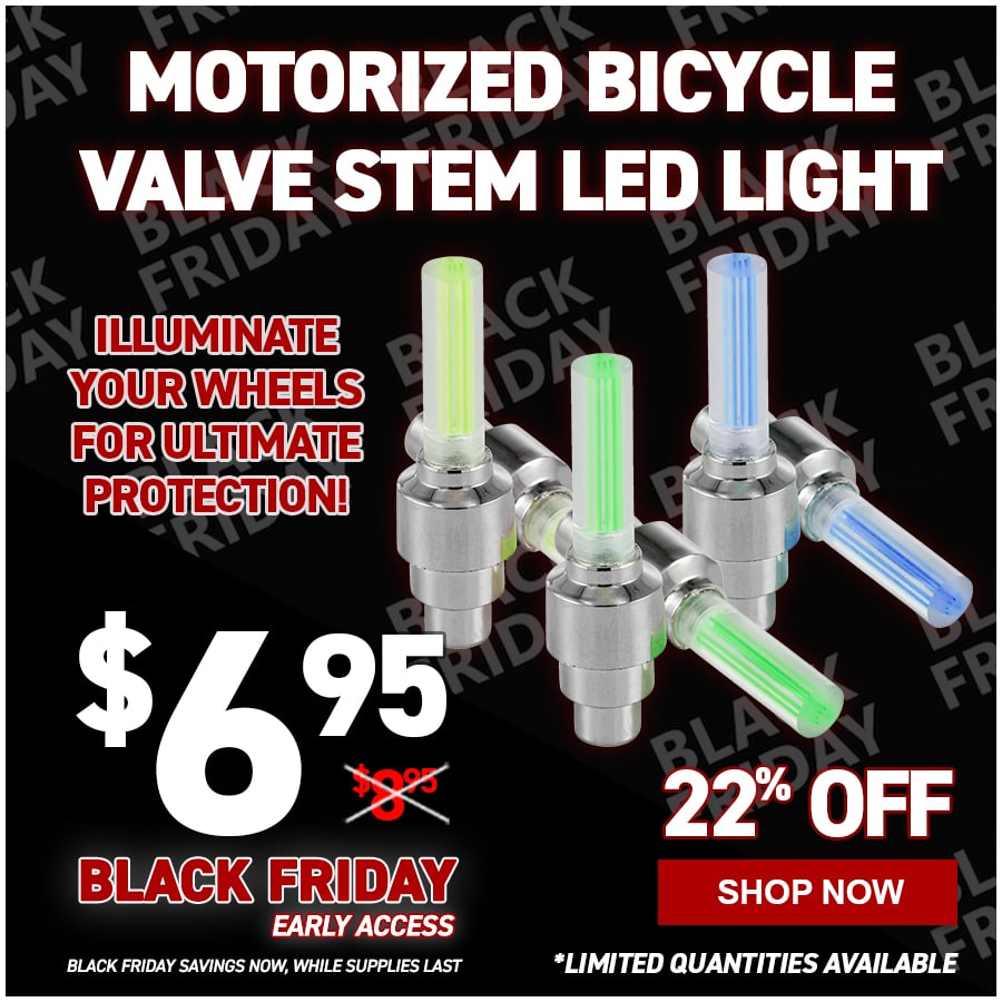 Safety is vital when you’re riding at night, and with a Motorized Bicycle Valve Stem LED Light on each of your wheels you’ll be seen from a distance without a problem. No matter if you’ve got an electric motor on your bike, a gas engine kit, or you’re just riding a regular old bike, make sure you’re safe and visible when you’re riding with one of these LED lights for your valve stem.