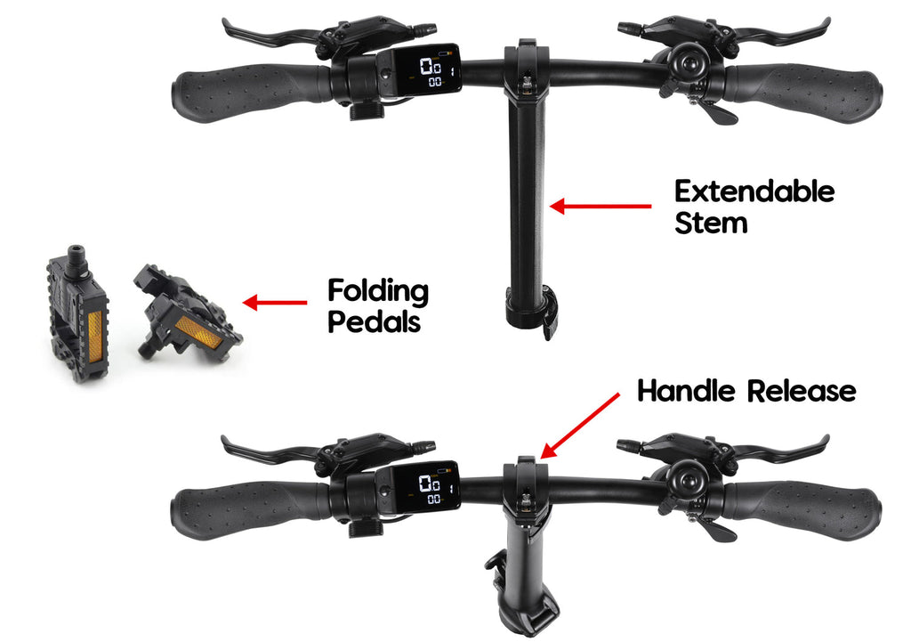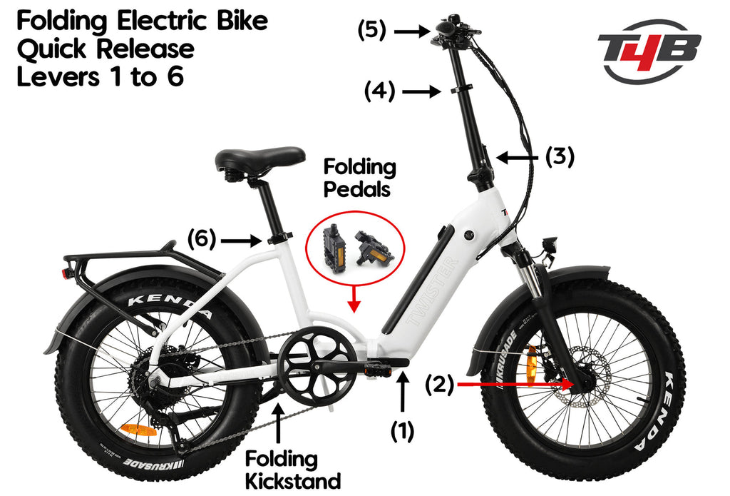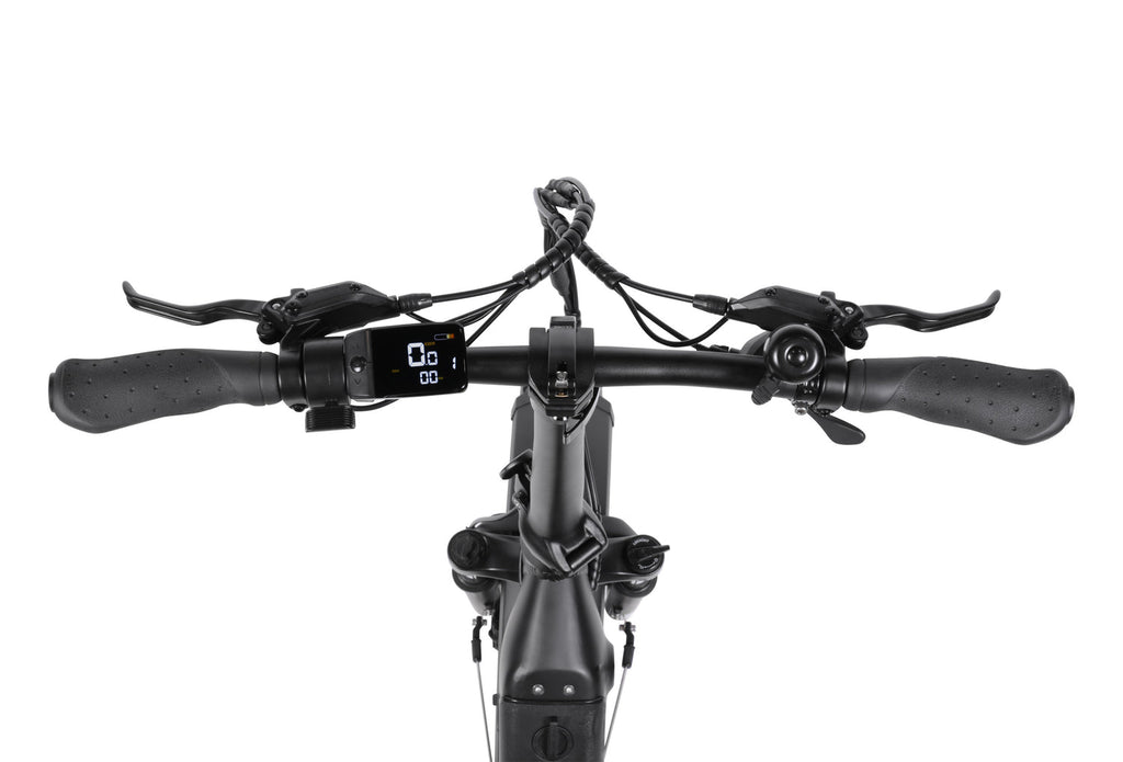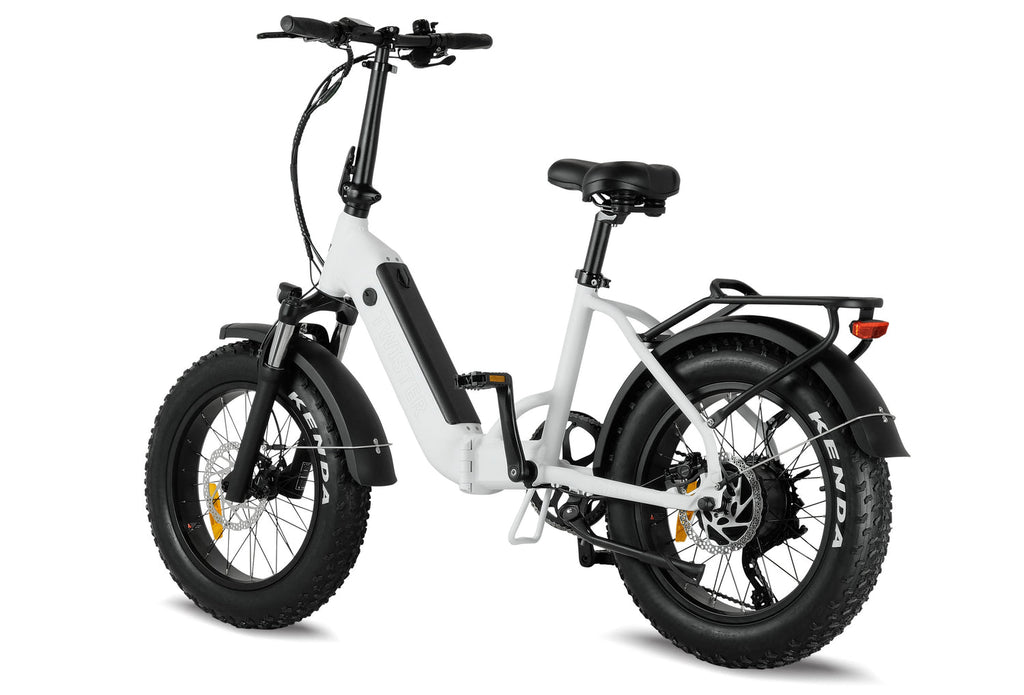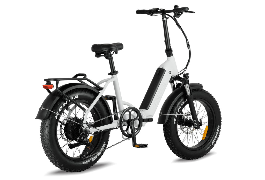 This eBike ensures comfortable and safe riding across diverse conditions, from city streets to light trails. It features aggressive KENDA KRUSADE 20” x 4.0” fat tires for superior stability and traction, complemented by responsive hydraulic disc brakes (180mm rotors) for reliable stopping. The addition of a Shimano Altus 7-speed drivetrain, a throttle, and cadence sensor pedal assist, all viewed on a monochrome LCD display, makes the T4B Twister a feature-rich, compact, and ready-for-anything transportation solution.