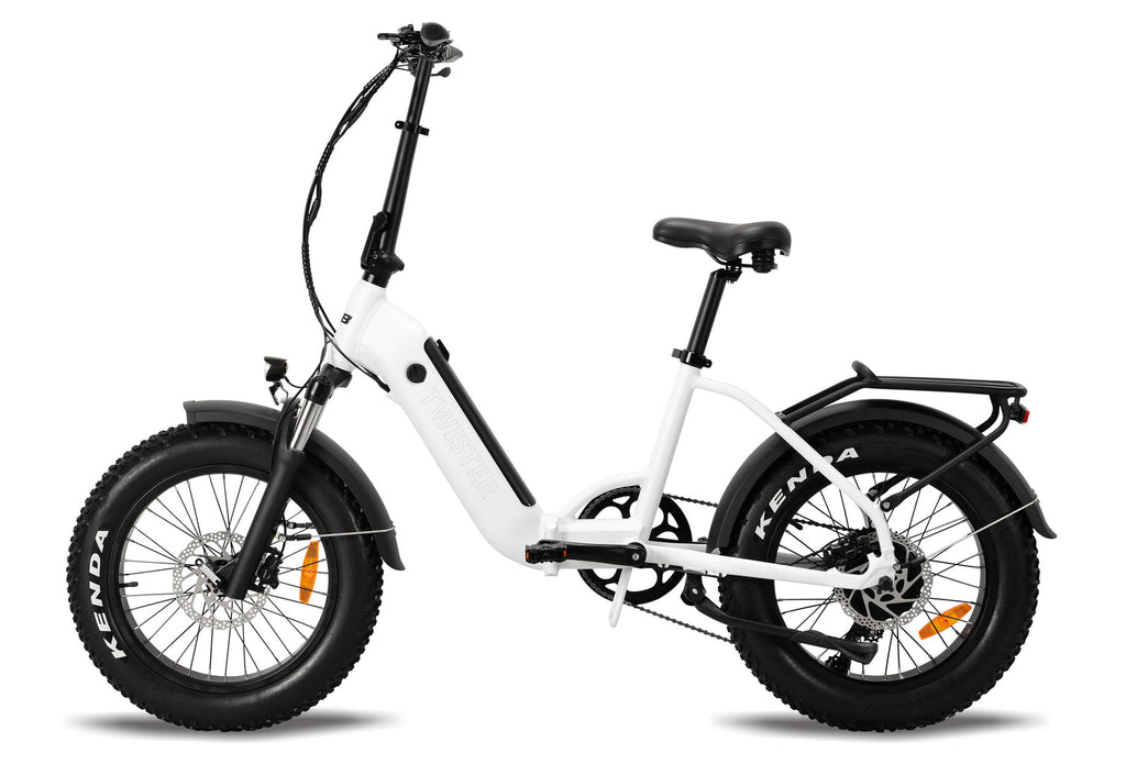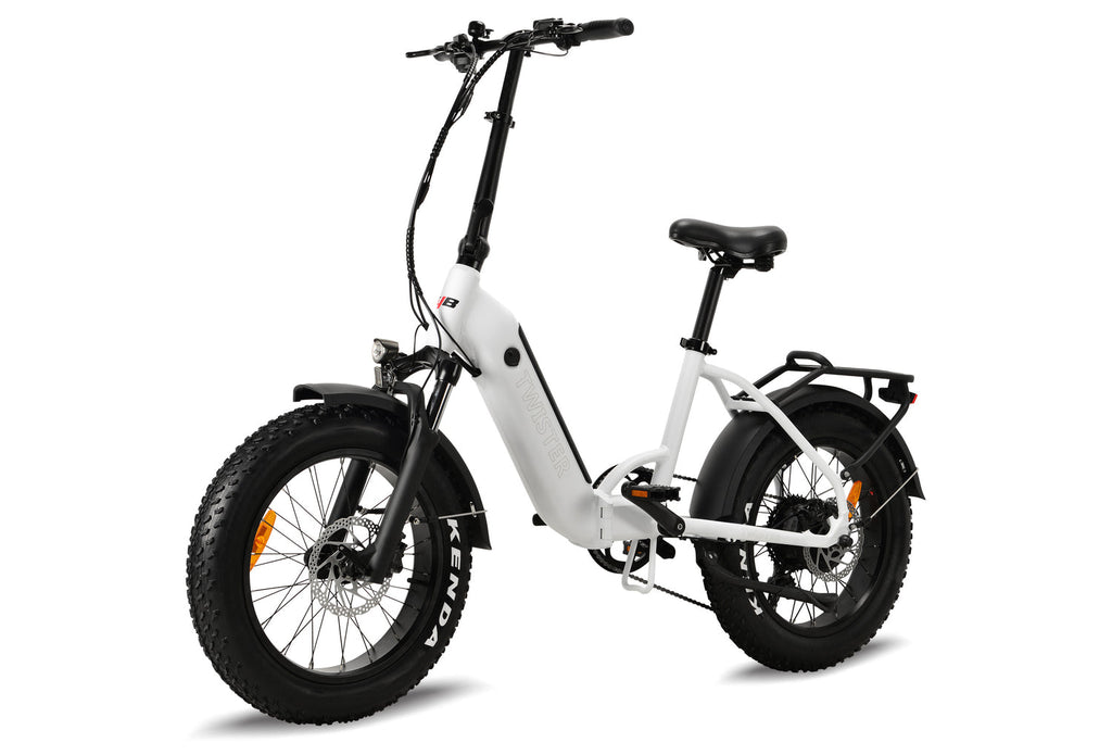 The T4B TWISTER is a highly versatile and practical electric bike, expertly combining the rugged capability of fat tires with the convenience of a folding, low-step design. Engineered for both urban commuters requiring easy storage and riders seeking off-road fun, its aluminum frame features a two-way folding mechanism and a low step-thru geometry for simple mounting and transport. Power is provided by a reliable 500W BAFANG rear-hub motor paired with a 48V 10.4Ah battery, giving the Twister a solid power output and a functional range of approximately 60 to 80 km per charge.
