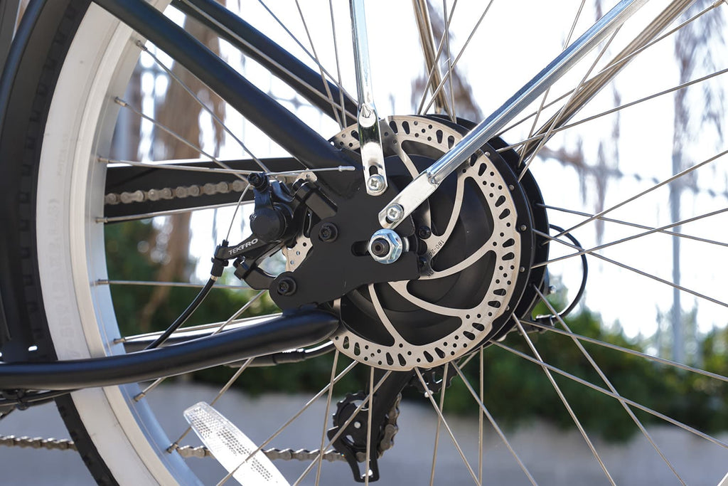 Aluminum alloy hydraulic disc brakes in the front and back of our electric bicycles make it easier to stop quickly and keep you safe while riding.